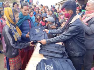 महावै ५ मा रहेका कालिका उच्च माध्यामिक विद्यालय, आदर्श प्रा.वि, ग्वालकोट प्रा।वि र चुनढुङ्गा प्रा.वि मा रहेका अति विपन्न, असाय बालकालिकालाई झोला हस्तान्तरण गरिएको हो ।