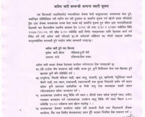 दुई पक्षबीचको विवादबाट हुन सक्ने सम्भावित दुर्घटनालाई मध्यनजर राख्दै जिल्ला प्रशासन कार्यालयले मंगलबार साँझ ५ बजेदेखि अनिश्चितकालीन निषेधाज्ञा जारी गरेको छ । अर्को आदेश जारी नभएसम्मका लागि निषेधाज्ञा जारी गरिएको प्रमुख जिल्ला अधिकारी बद्रीनाथ गैरेले जानकारी दिनु भयो ।