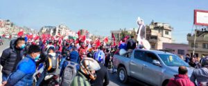 यो समूहका अध्यक्ष एवम् प्रधानमन्त्री केपी शर्मा ओलीको तस्वीरसहित र्याली निस्किएको उहाँले बताउनु भयाे।
